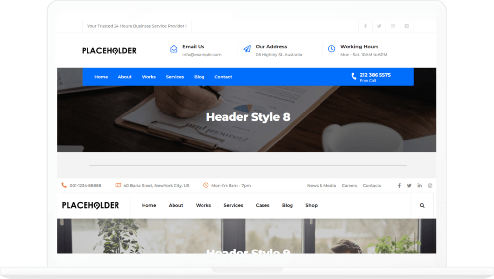 This a set of 20 elementor pro header templates to help you get a head start when designing your elementor landing pages, all the headers are multi-purpose and can be used in any type of websites all the headers are built using the elementor pro plugin and are fully responsive and fully customizable.