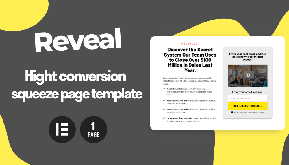 and with this template, you can rest assured that you have a beautiful high converting squeeze page that can do the work for you